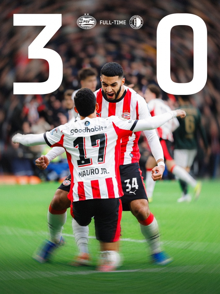 02月02日讯 荷甲联赛第21轮,领头羊埃因霍温3-0完胜联赛第2费耶诺德,将积分优势扩大到17分。